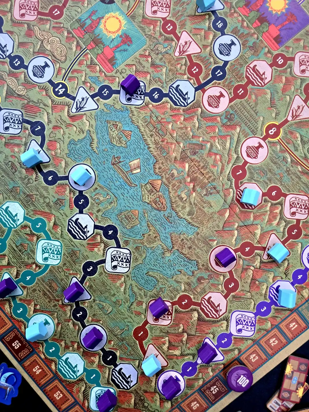 You can’t really do all the actions, it is worth it to focus on 1-2 specific ones to score more, but it could also backfire if certain Ayars retire faster than you wanted. Yeah, it’s pretty hard to do well in this game! 😄 It’s a lot more interactive than our usual euro games, but we like it!
