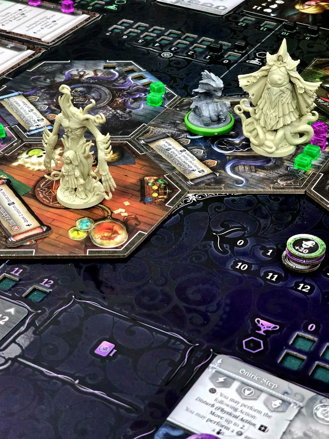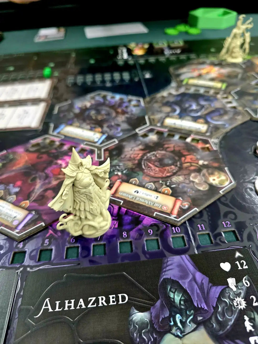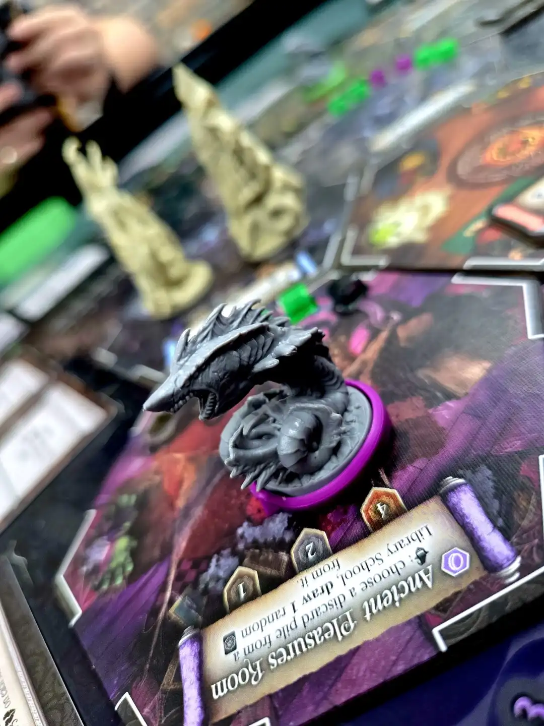 🛡️The other part is area control, as with spells you cast and things you do you fill up slots of the rooms with instability cubes. If they’re filled they flip to a stronger side, and you also hand out points according to majority.