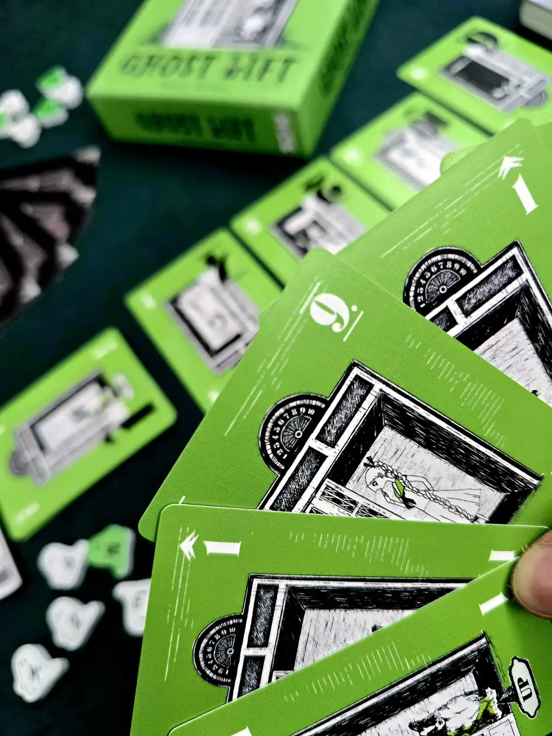 Ghost Lift is a small box card shedding game, which might look simple at first: There are just number cards ranging in value from 1 to 10, and of course in card-shedding fashion the goal is to get rid of your cards faster than your opponents. There are however 3 key things that make it unique and fun: