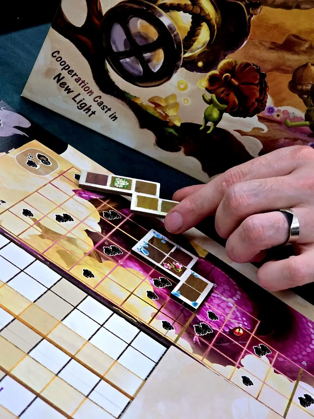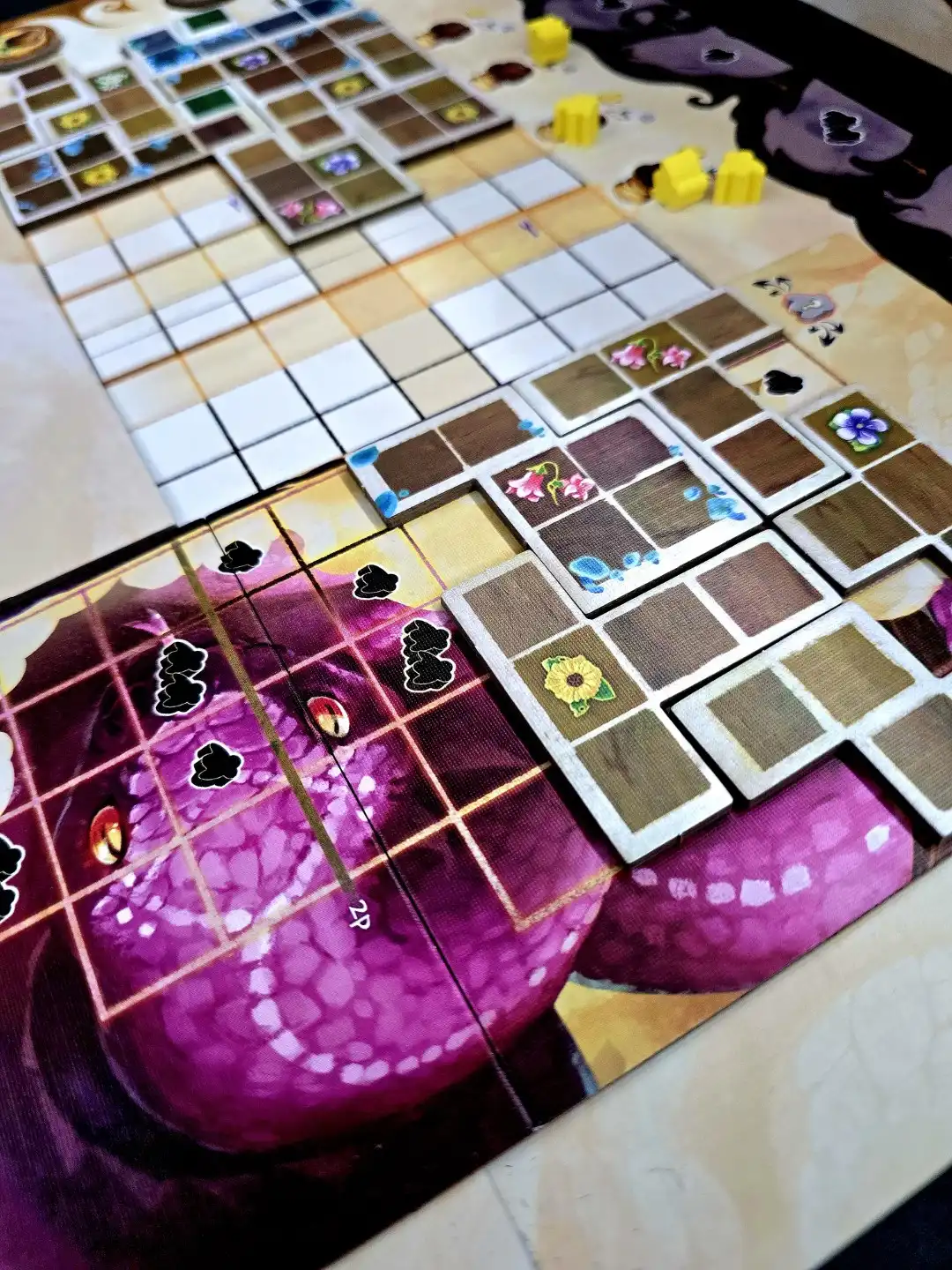 To be honest the main twist of the game of secretly choosing tiles is the part I like the least. 😶 If you pick the same more than 1-2 times, it quickly spells doom. Otherwise if you are looking for a quick and light tile-layer, check out Last Lantern.