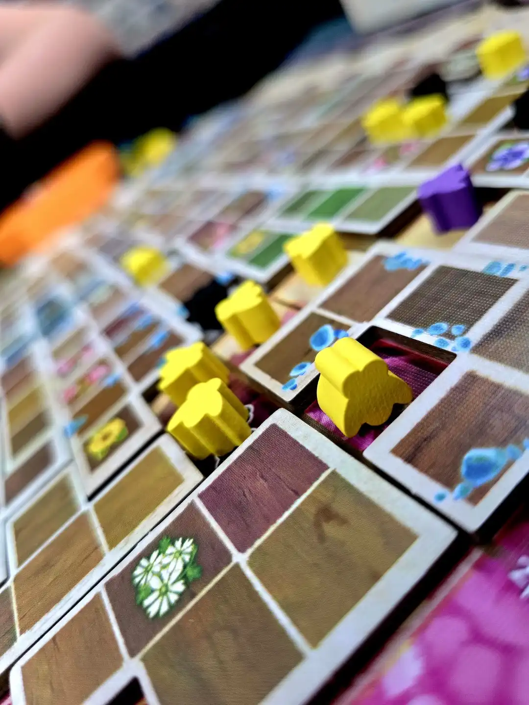 Additionally, unclaimed tiles go on a track each round, adding black fireflies into the bag and getting you closer to defeat. To help you out, you can use the familiar meeples to claim back lost tiles, re-infuse the bag with yellow fireflies or give you bonus tiles to fill up empty squares. Reach the end of the path and survive the final flurry of fireflies and you win! 😉