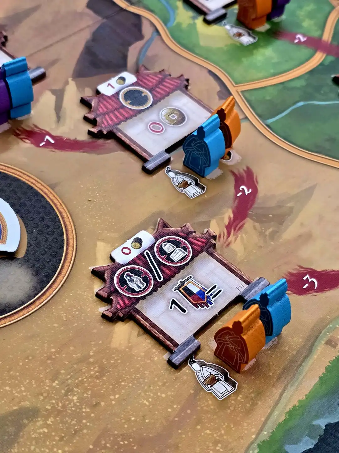 Each region is associated with a Palace, so every time you go to one, you go up the corresponding track. 📊 Depending on your objective cards, position of your rivals or bonuses you can claim, you might prefer some tracks over others.